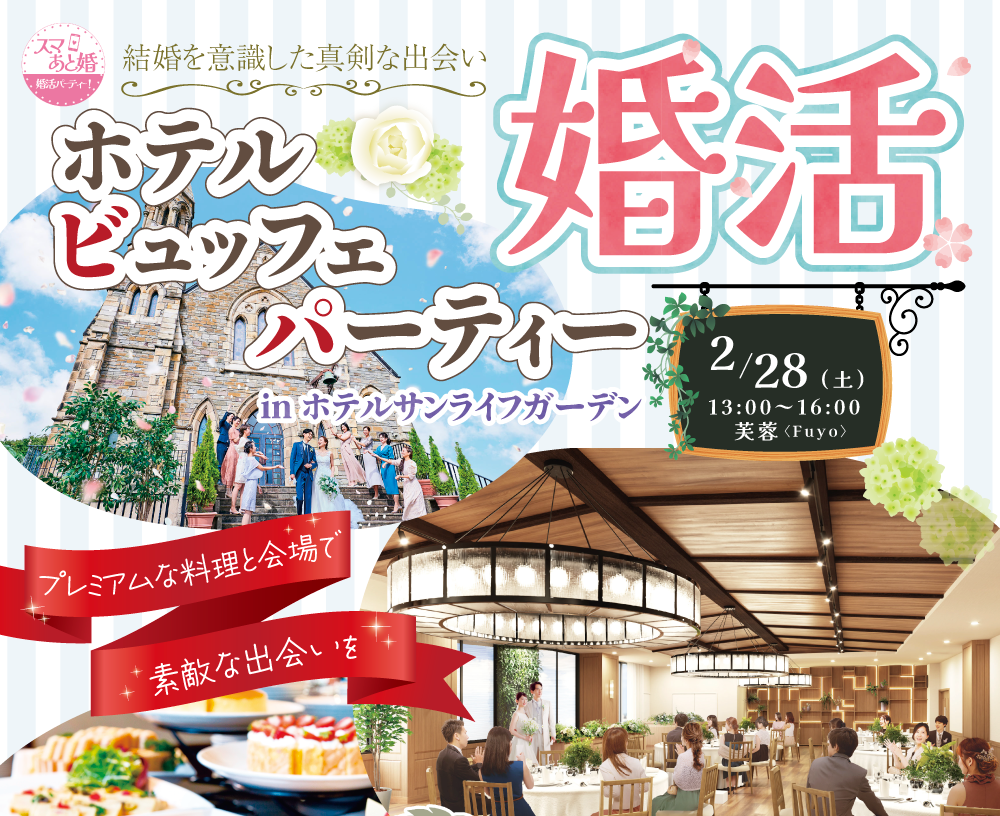 【締切令和8年2月23日】ホテルビュッフェパーティー婚活 in ホテルサンライブガーデン 令和8年2月28日