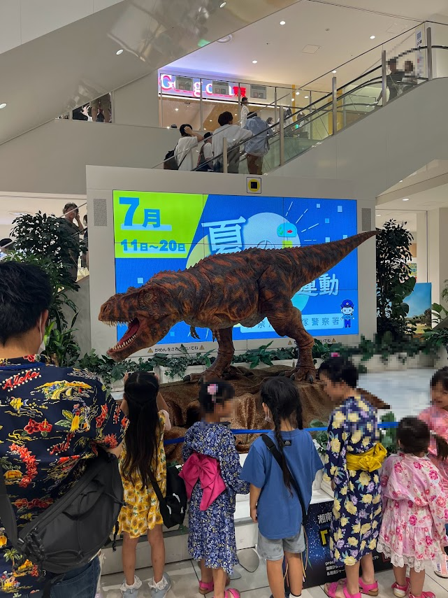 湘南ひらつか七夕まつりの開催にあわせ催事場で恐竜ロボットの展示やアトラクションを行いました。たくさんの子供たちに喜んでいただきました。
