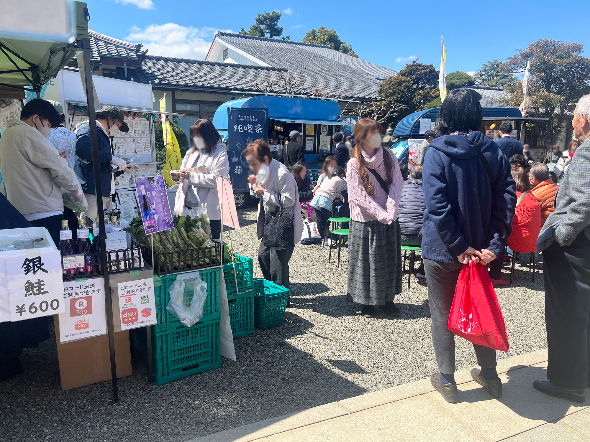 七福神めぐりのあとはお寺で開催中のマルシェで交流会