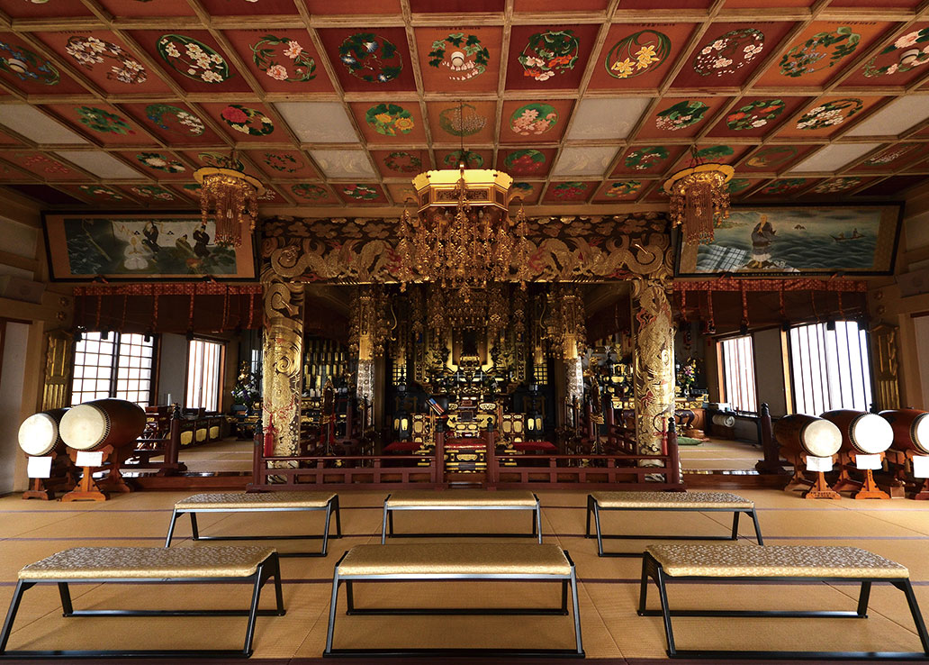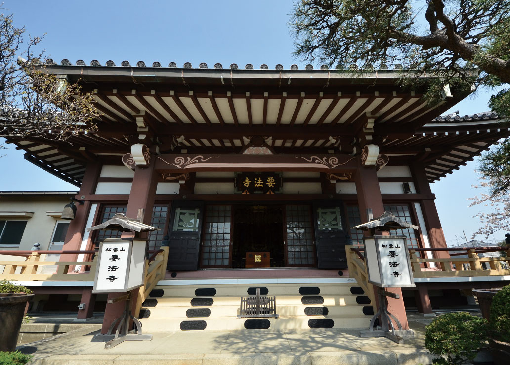 その晩日蓮大聖人が「四句要法」を説法したところ、平塚の塚の松に紫雲がたなびいたそうです。深く感動した泰知は邸宅を献上して寺とし、日蓮大聖人より、紫雲のたなびく様から「松雲山」四句要法にちなみ「要法寺」という山号と寺号をいただき開山されました。