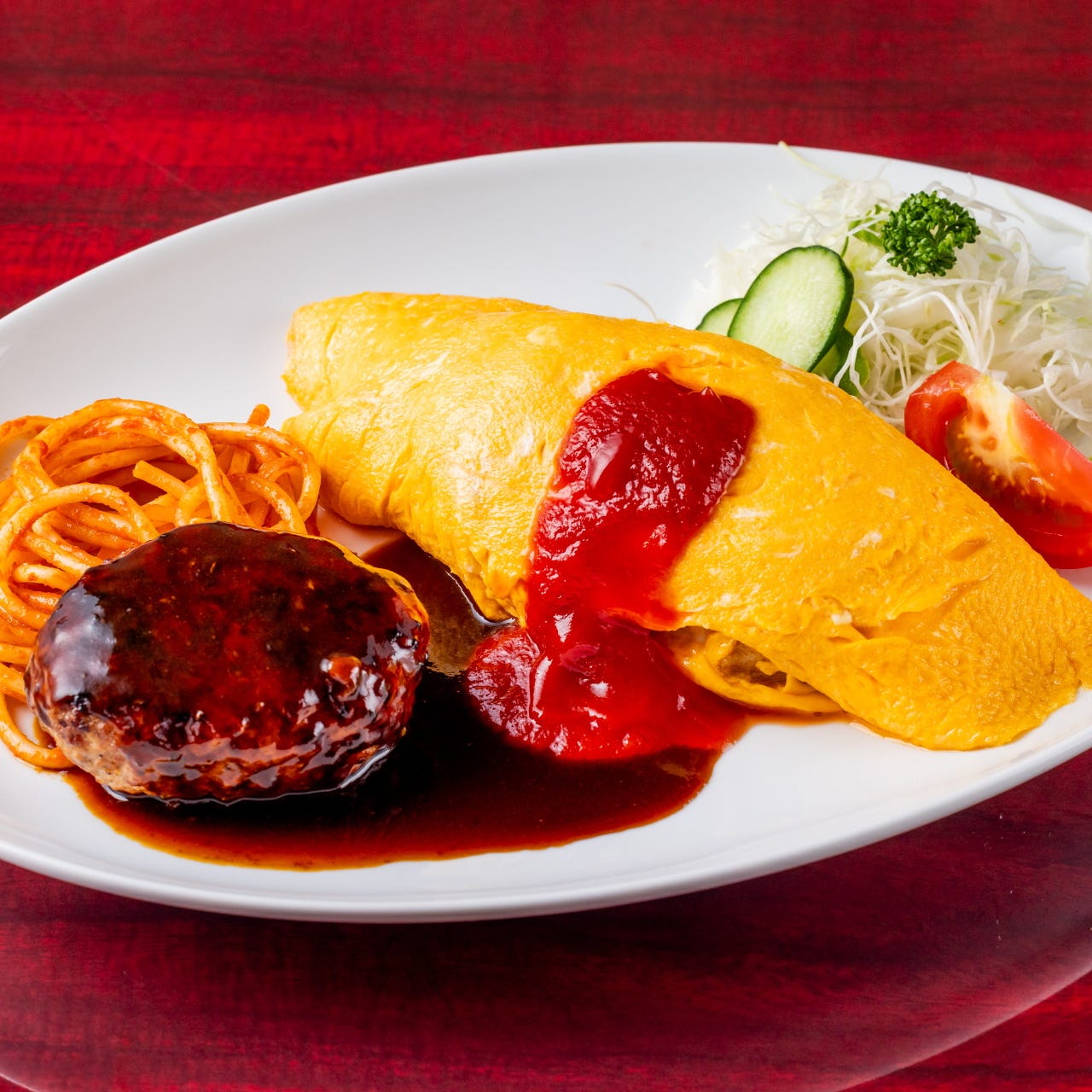 王道のナポリタン、ふわとろのオムライス、サクサクのエビフライ。