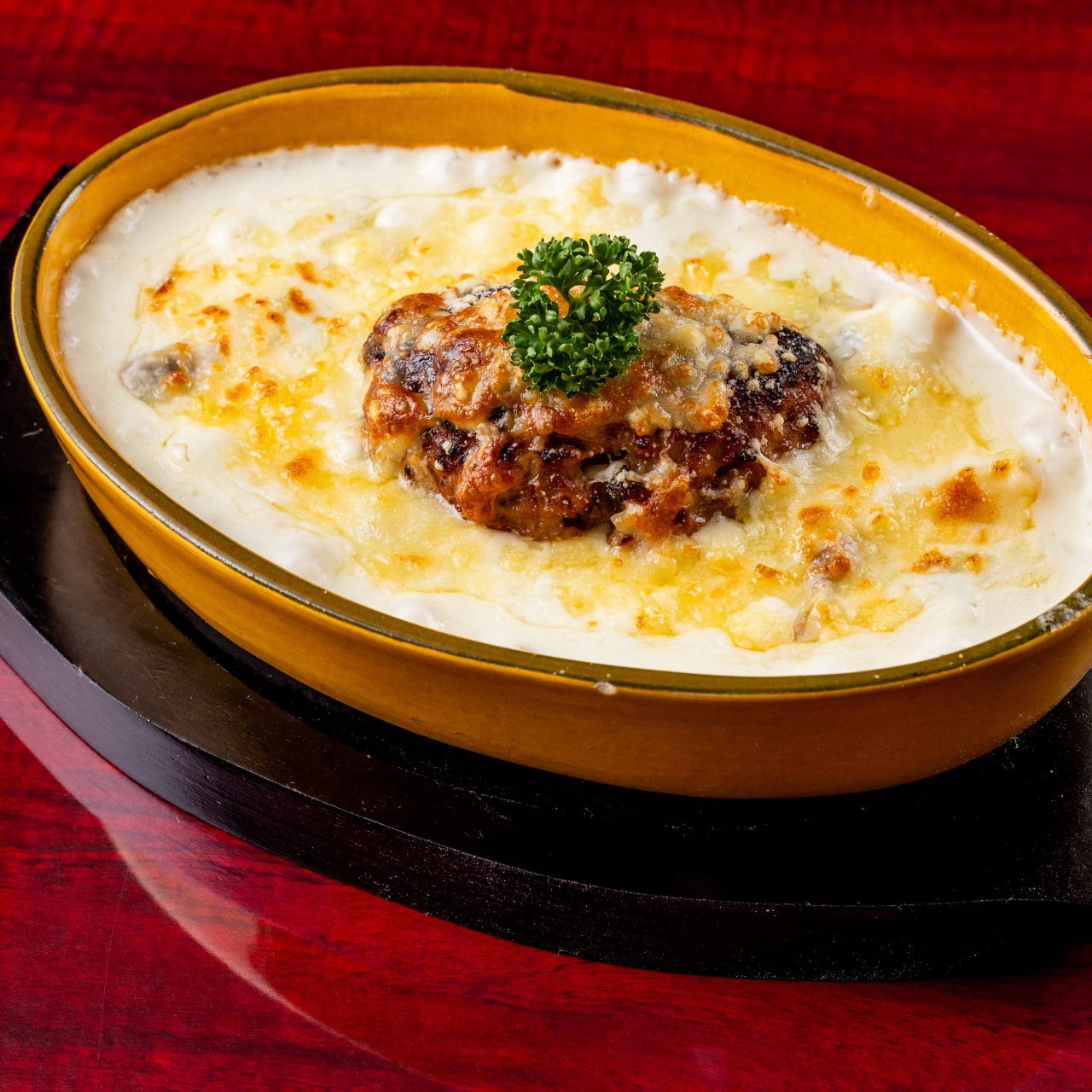 ハンバーグのためだけに厳選した肉を、長年の経験で培った配合と手ごねの技で仕上げる究極の一品。